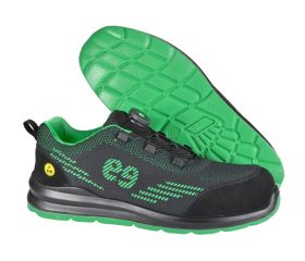 Deportivo de seguridad. Tejido técnico y refuerzos de microfibra. Puntera y plantilla no metálica. Suela PU/PU. ESD. EN ISO 20345:2022 S3S CI FO SR SC.